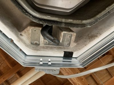 P5はドレン系統のエラーです、ドレンパンの溜まり水が溢れかえらないように運転を止めてしまいます! 部品取替完了、試運転で排水確認!