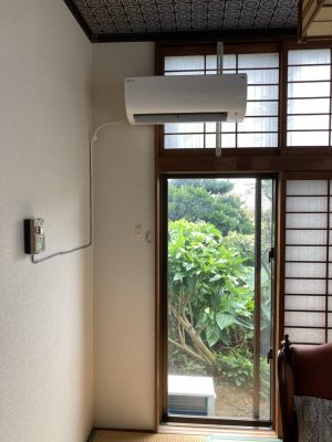 お客様のご要望で5.6Kw18畳用へお取替え、それに伴い電圧切り替え、コンセント、ブレーカー交換までさせて頂きました! やっと快適に過ごせると喜んでおられました!